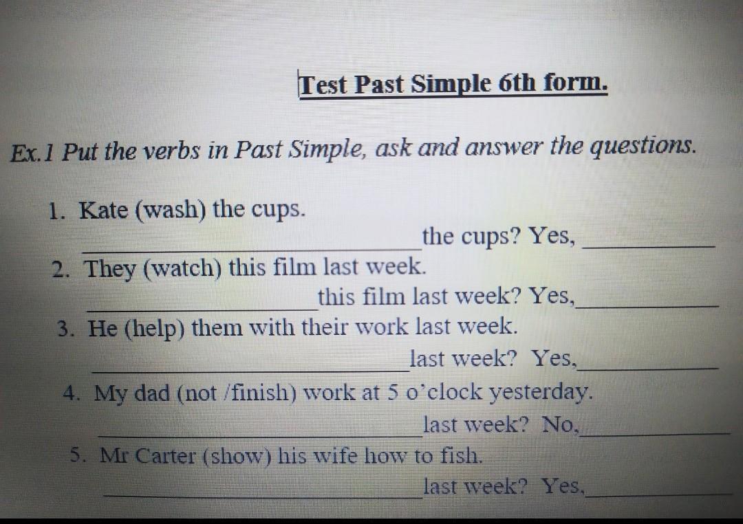 1)Kate washed the cups. Did Kate wash the cups? Yes, she did.