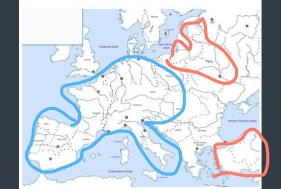 - линиями синего цвета покажите границы Франции до наполеоновских войн.