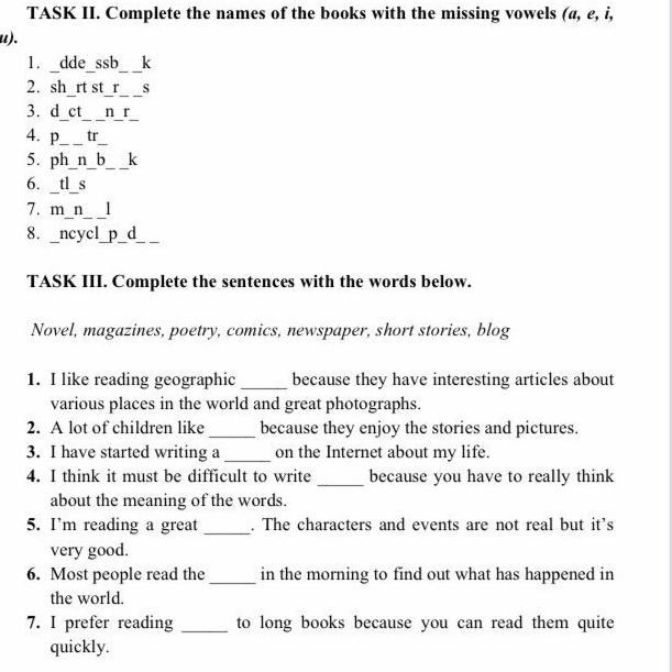 1 magazines 2 comics 3 blog 4 poetry 5 novel 6 newspaper 7 short stories