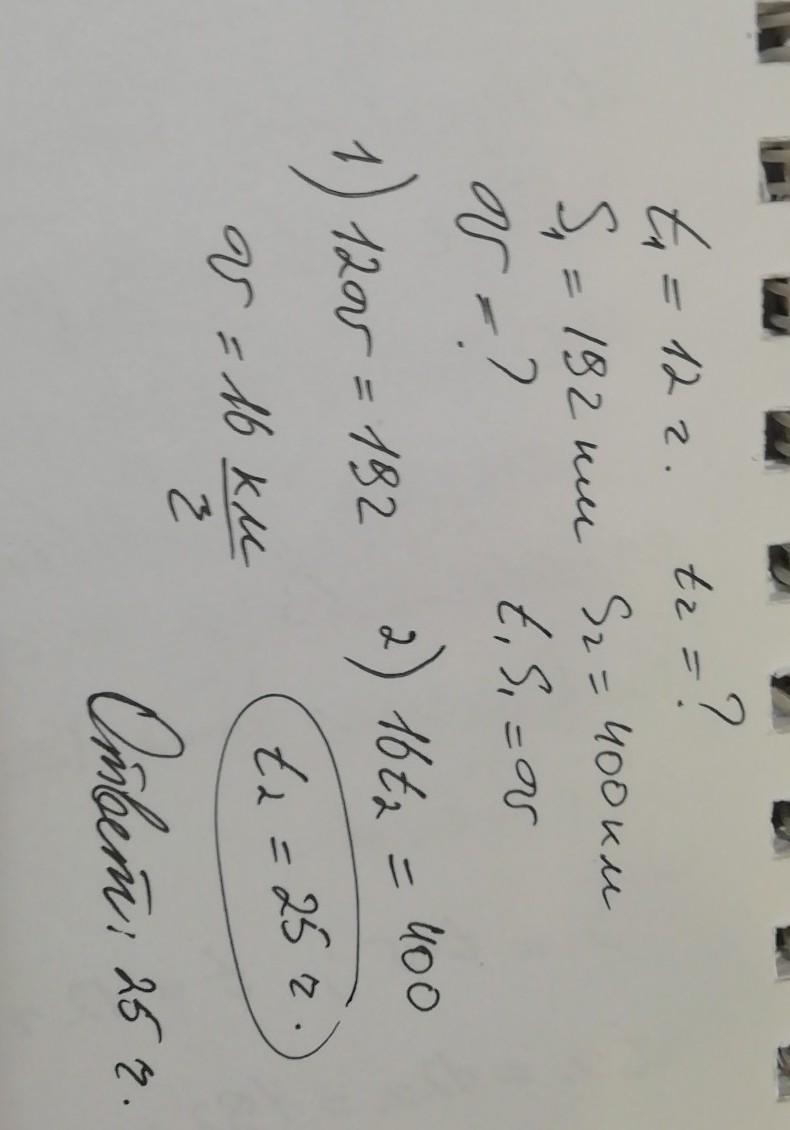 моторная лодка за 12 часов прошло 192 км .за сколько часов она пройдет 400км,если будет идти с такой же скоростью