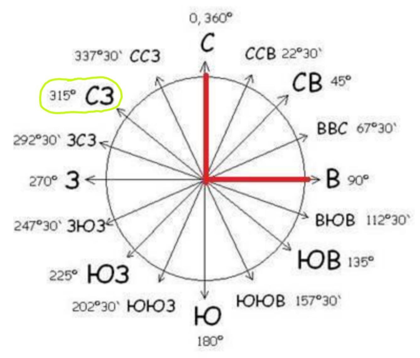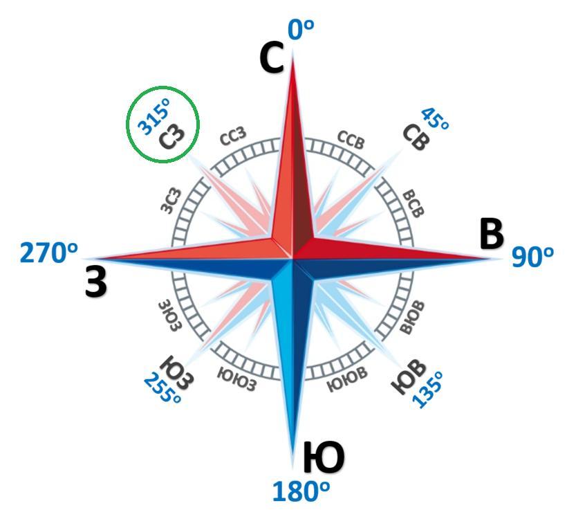 4) 315° ✔ ( Северо - Запад ).
