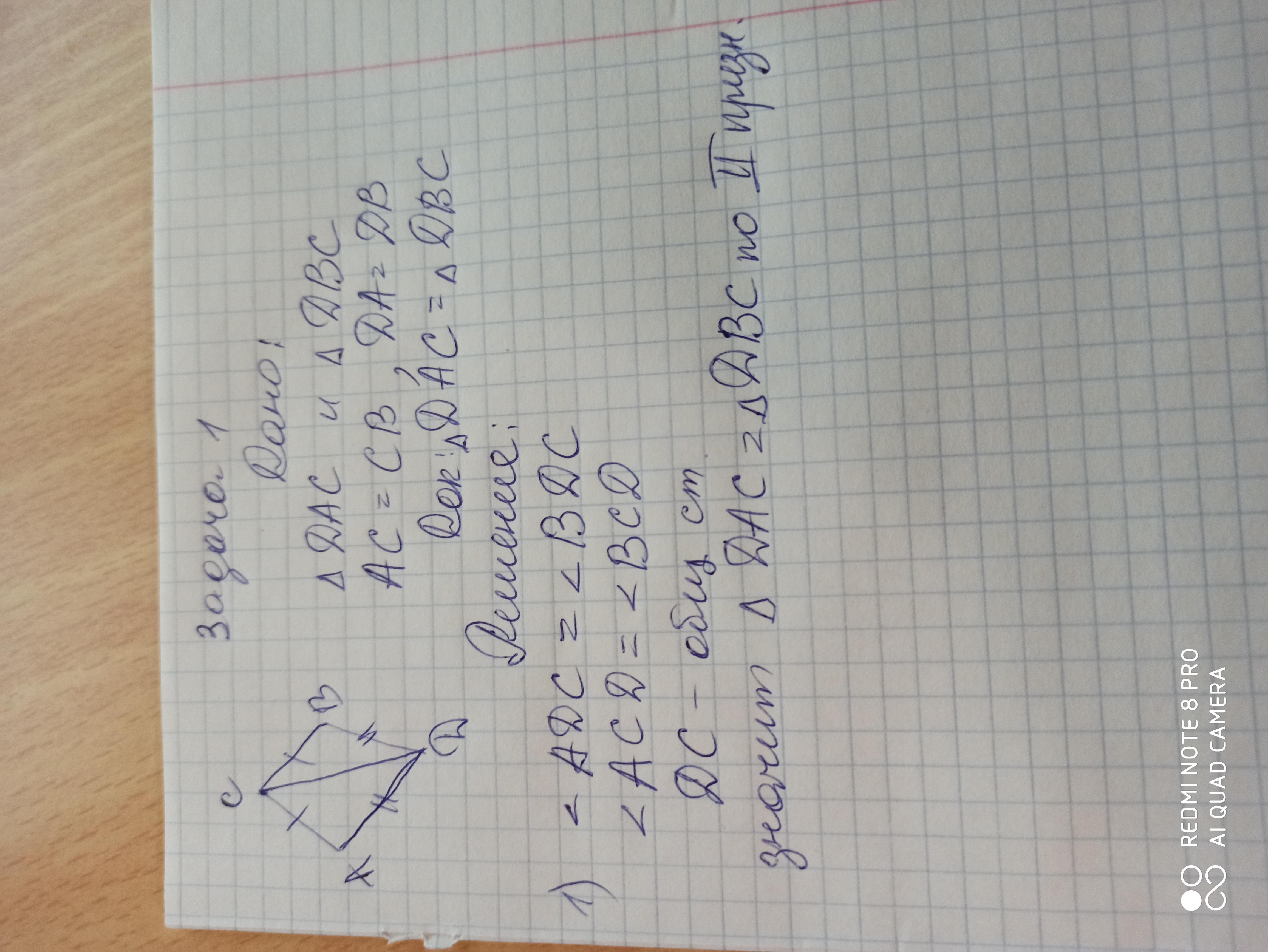 Ответ: ЗАДАЧА 3)AC=AD ,AB-ОБЩАЯ СТ , УГОЛ САB=DAB, ТРЕУГ ACB=ABD ПО 1 ПРИЗН.