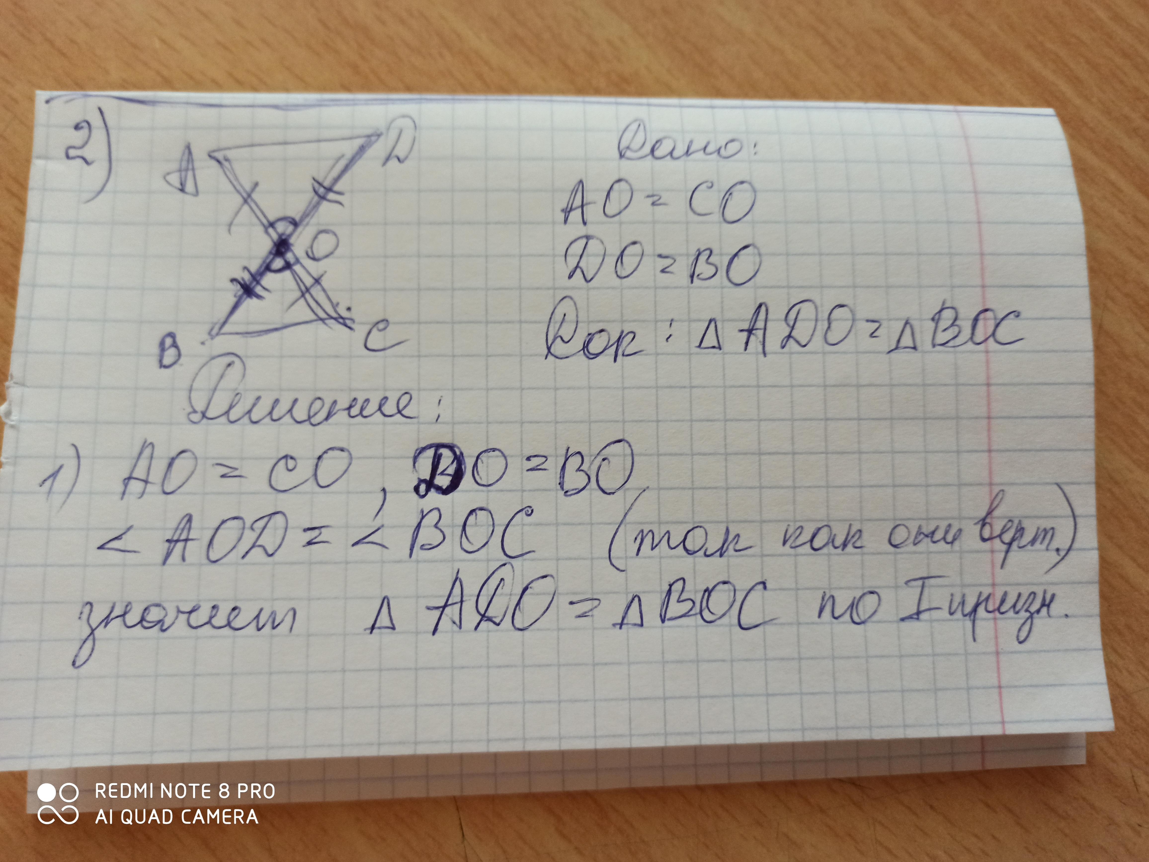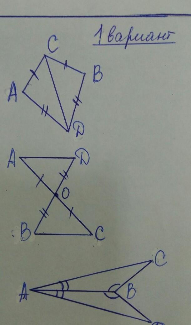 Помогите пожалуйста : доказать равенство треугольников в каждой задаче. Чертеж ОБЯЗАТЕЛЬНО. НЕ редактировать. Все расписать. ПОДПИСАТЬ на листе.