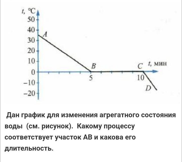 Отрезок АВ соответствует процессу охлаждения воды с 35 до 0°С и заняло это - 5 минут