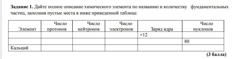 дайте полное описание химического элемента по названию и количество функциональных частиц, заполнив пустые места в ниже преведенной таблице