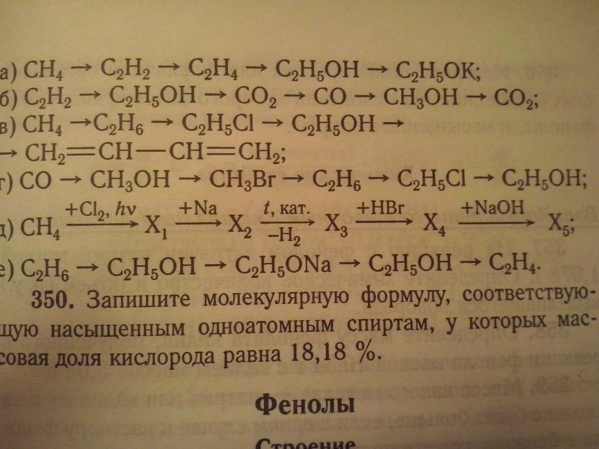 CH4→(+Cl2, hv(над стрелкой) ) X1→(+Na)→(t, кат, -H2) →X3 →(+HBr) → X5;