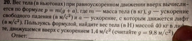 p = m * (g + a) = 40 * (9,8 + 1,4) = 448 H - вес тела