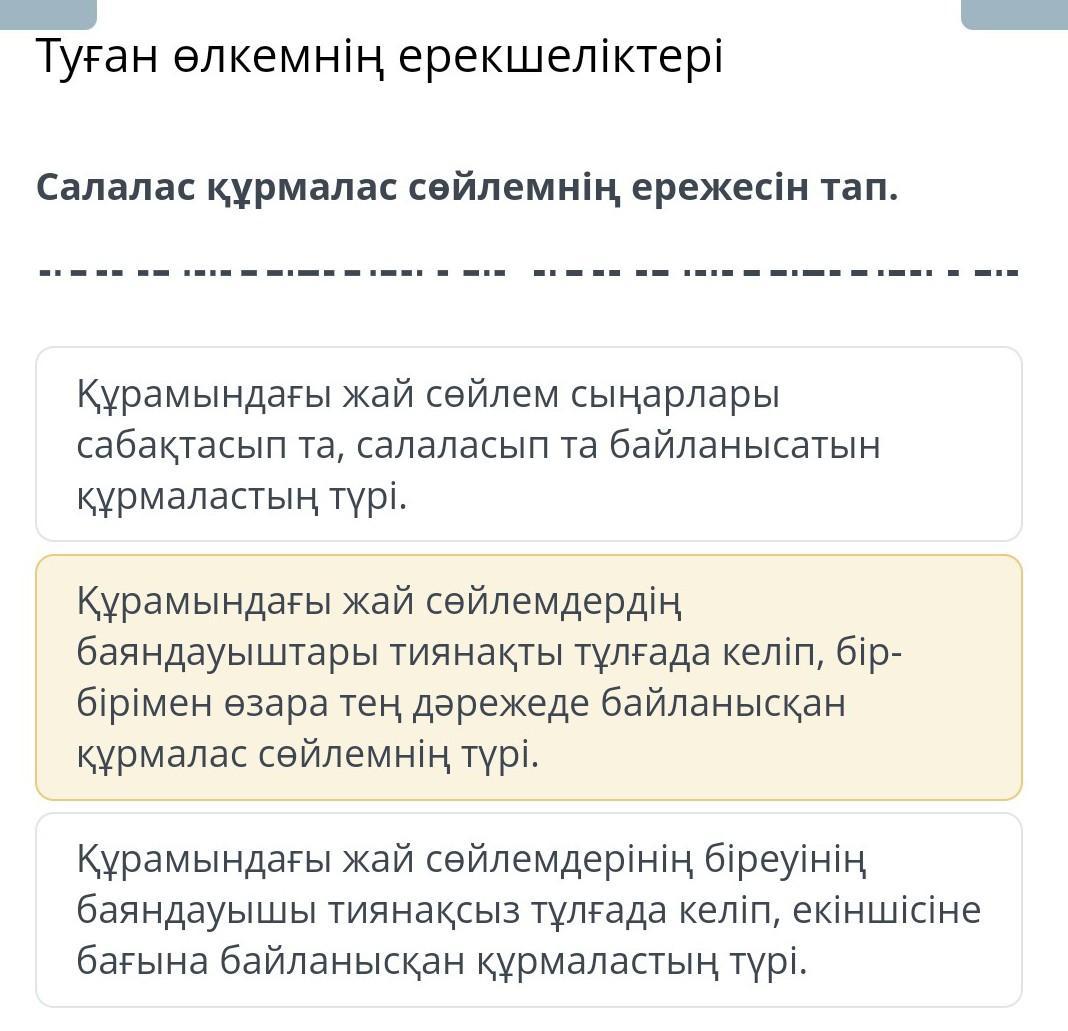Құрамындағы жай сөйлемдердің баяндауыштары тиянақты тұлғада келіп, бір-бірімен өзара тең дәрежеде байланысқан құрмалас сөйлемнің түрі