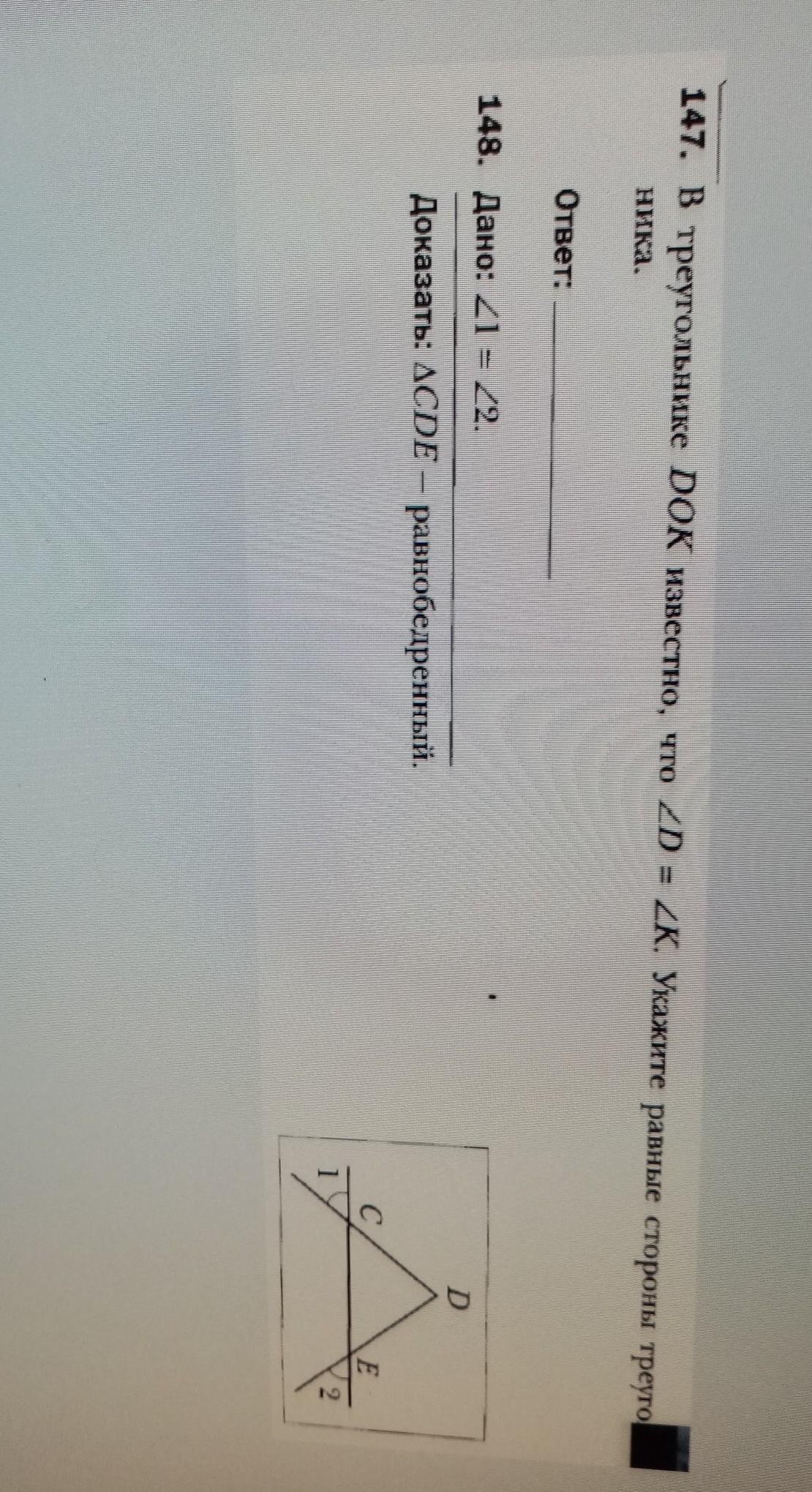 Так как углы ∠1=∠2 следует что ∠DCE=∠DEC.