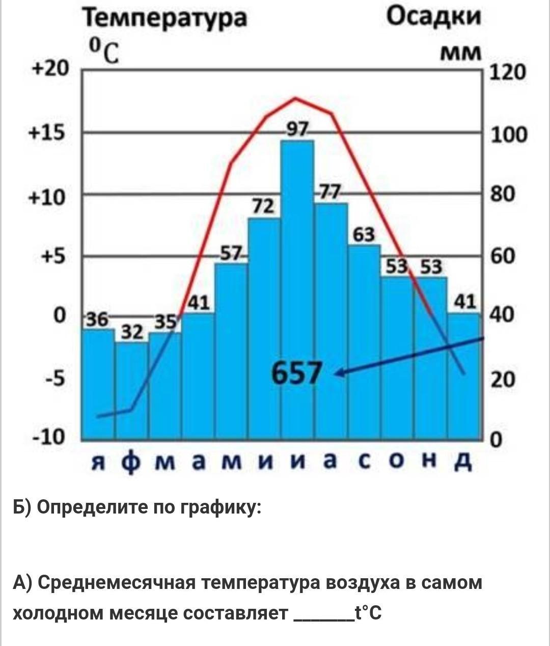 А) Среднемесячная температура воздуха в самом холодном месяце составляет _______t°С