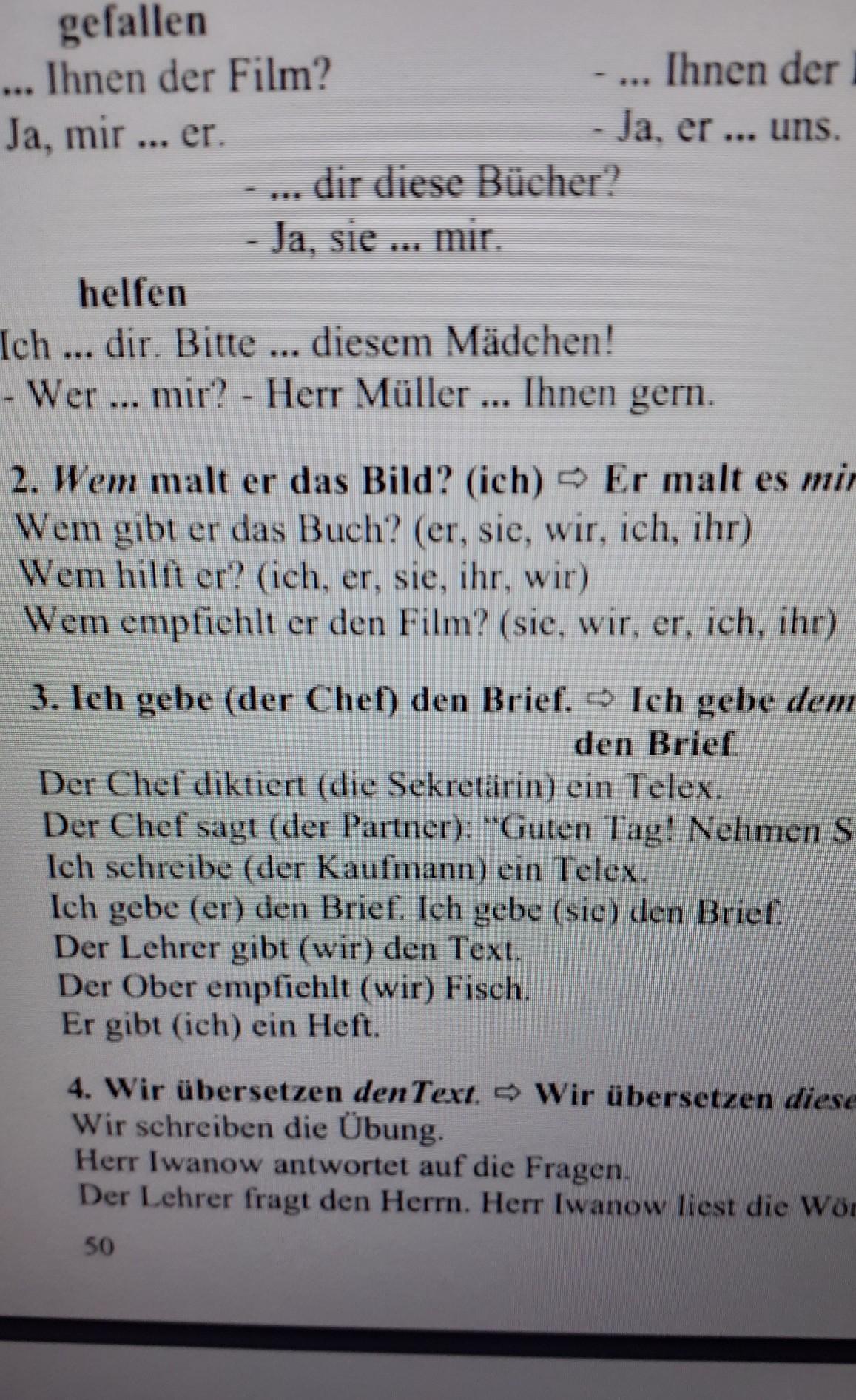 1) Er gibt es ihm / ihr/ uns / mir / euch .
