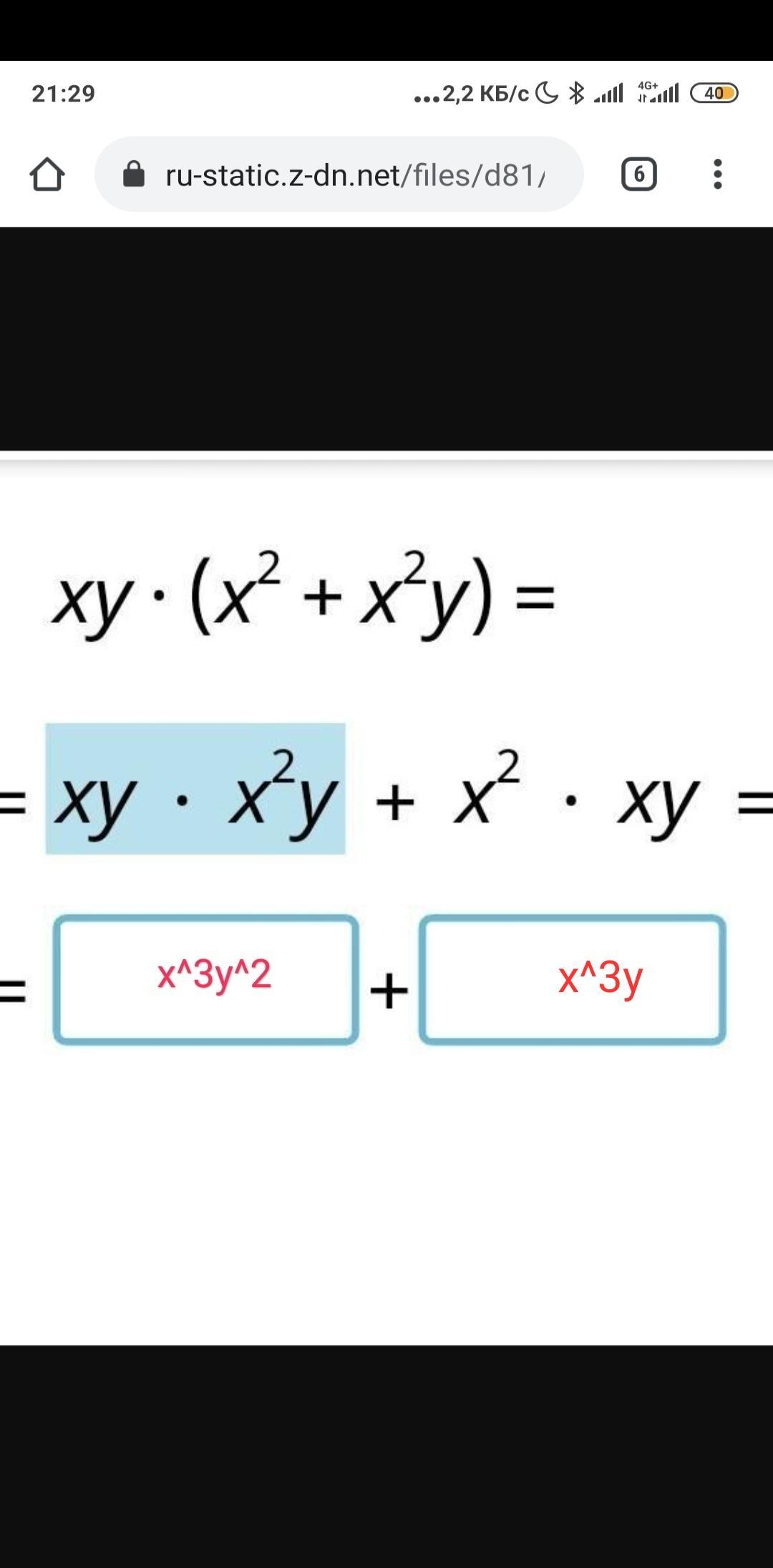 xy×(x²+x²y)=xy×x²y+x²×xy=x³y²+x³y