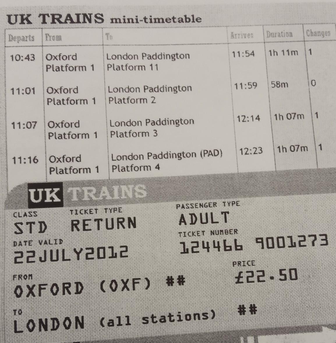 4. The 10:43 train from Oxford takes 58 minutes to get to London.
