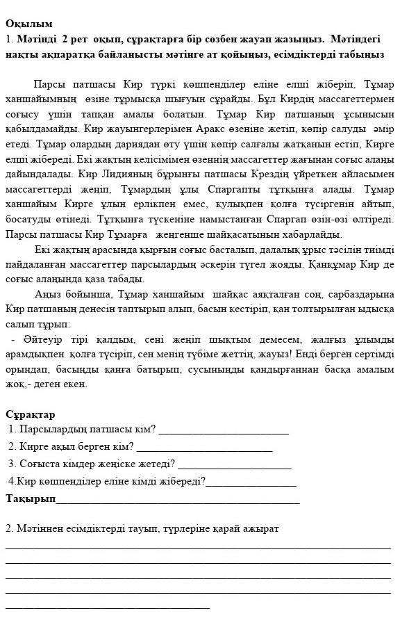 - Соғыста Тұмар ханшайым және оның елшісі жеңіске жетеді