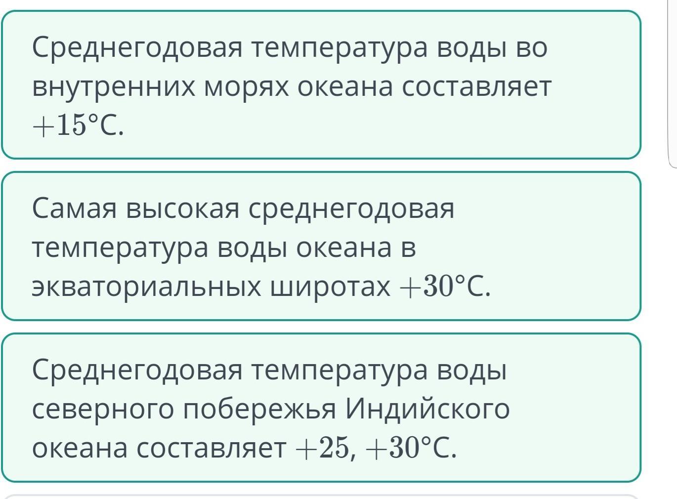 Проанализируй карту среднегодовой температуры воды Мирового океана. Определите верные утверждения об изменении среднегодовой температуры Мирового океана . СРОЧНО ДАМ 50 БАЛЛОВ