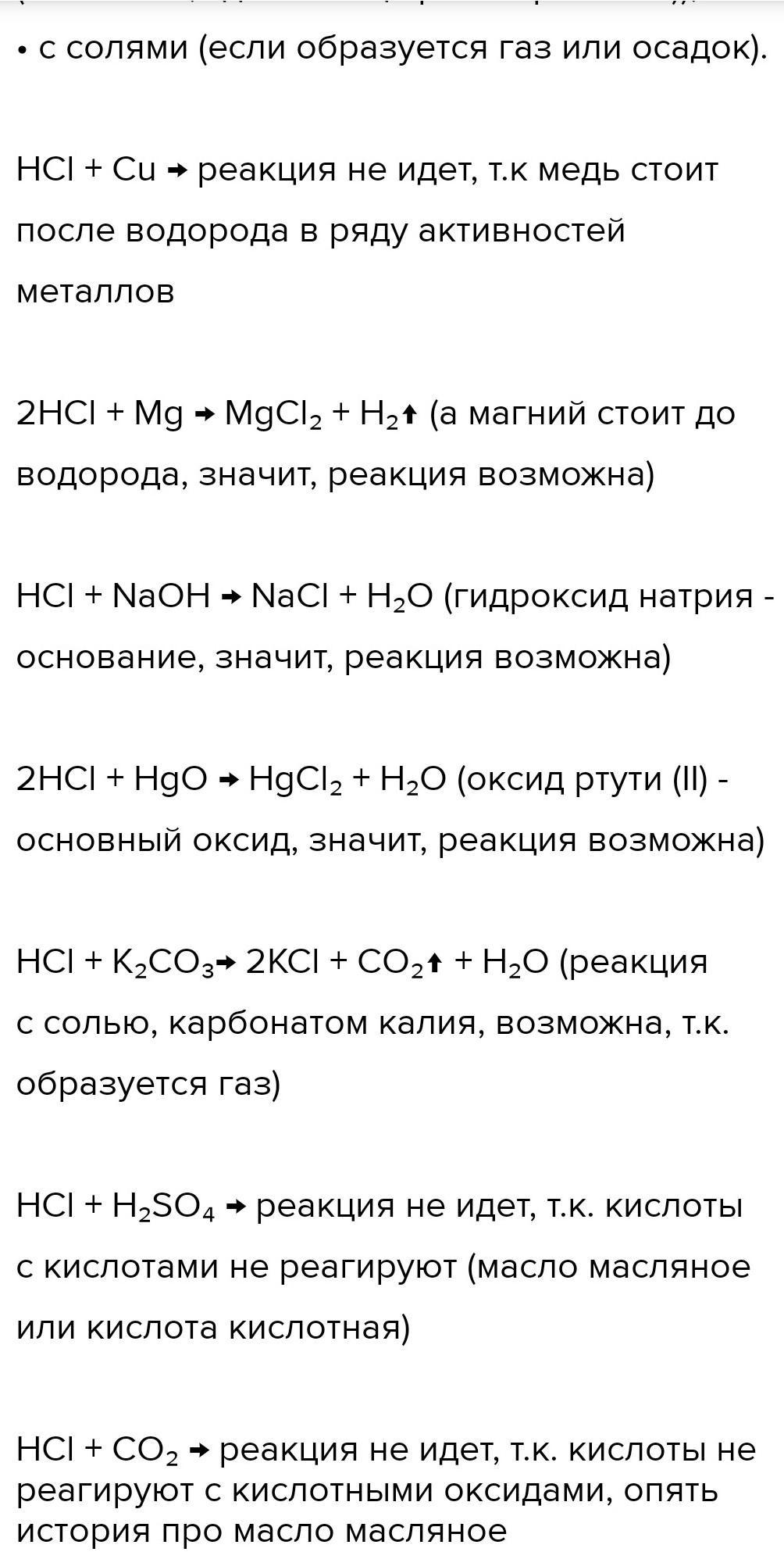 С чем реагирует соляная кислота? Запиши уравнения реакций.