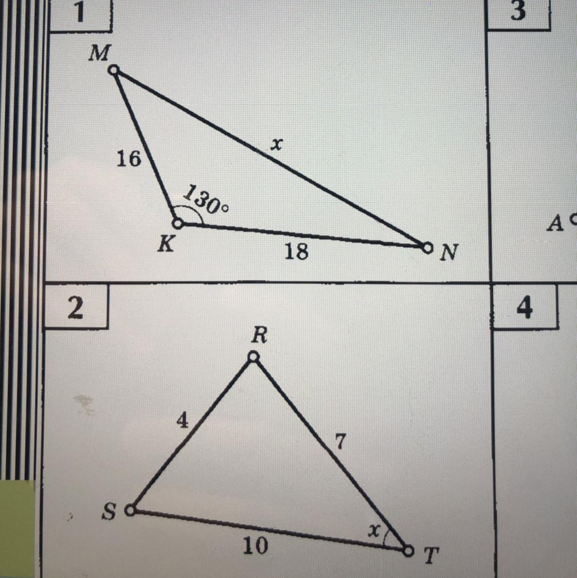 1. По теореме косинусов имеем x^2=16^2+18^2-2*16*18*cos 130°