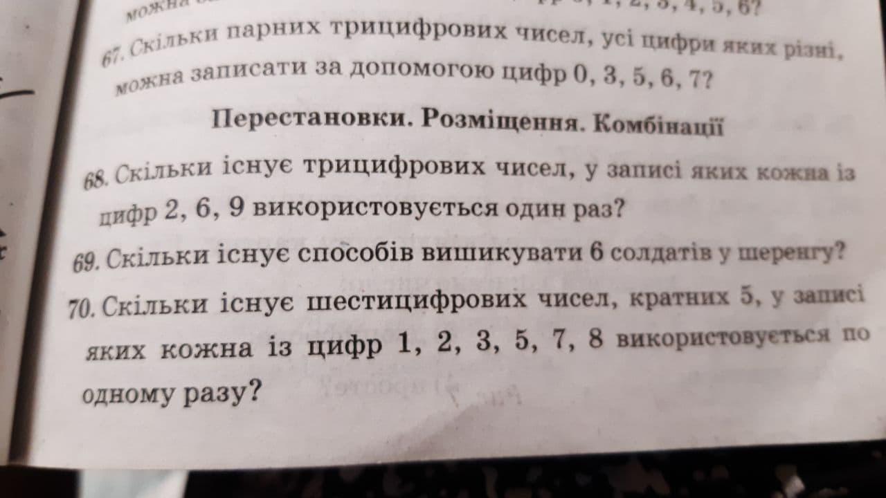 69 . n = P₆ = 6 ! = 1 * 2 * 3 * 4 * 5 * 6 = 720 ( способів ) .