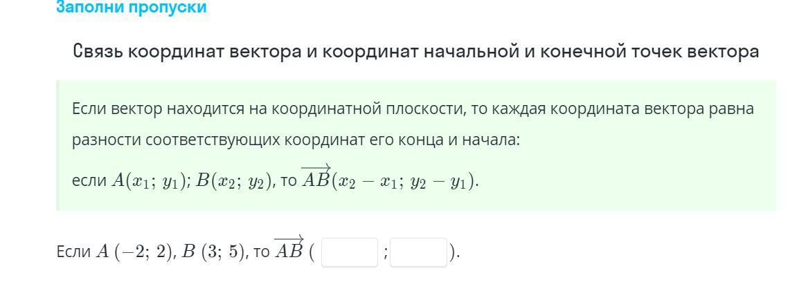 Если А (-2; 2), B (3; 5), то AB⁻ (5; 3).