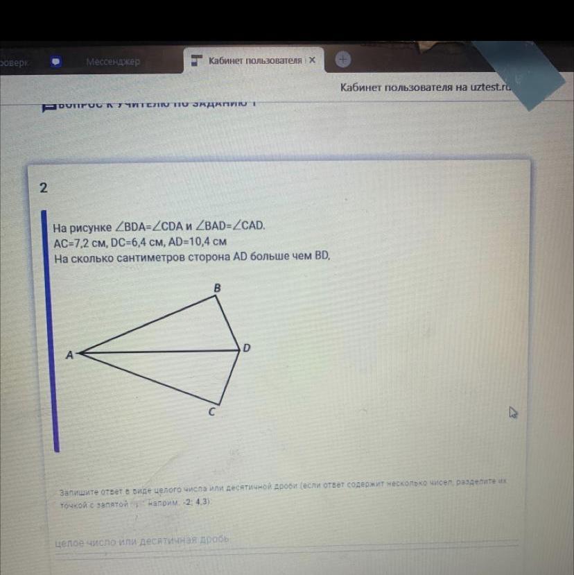 Объяснение: BD = DC , что следует из равенства треугольников АВD и ADC по второму признаку равенства треугольников ( AD- общая, прилежащие углы равны по условию.
