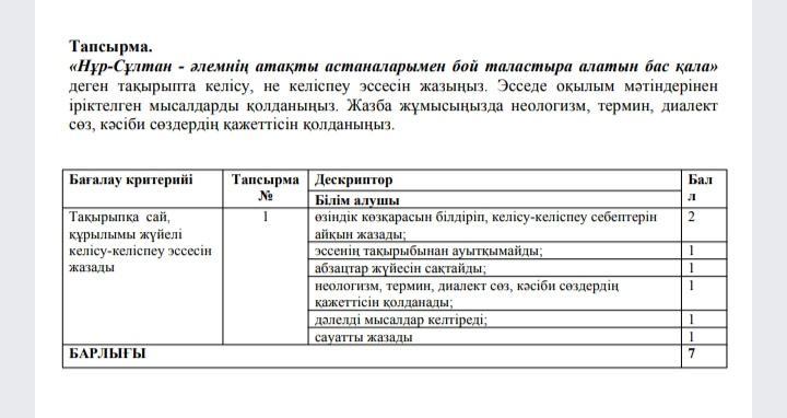 Помогите пожалуйста, напишите эссе на казахском по дескриптору. Даю 25баллов. Это мне для СОРа очень нужен