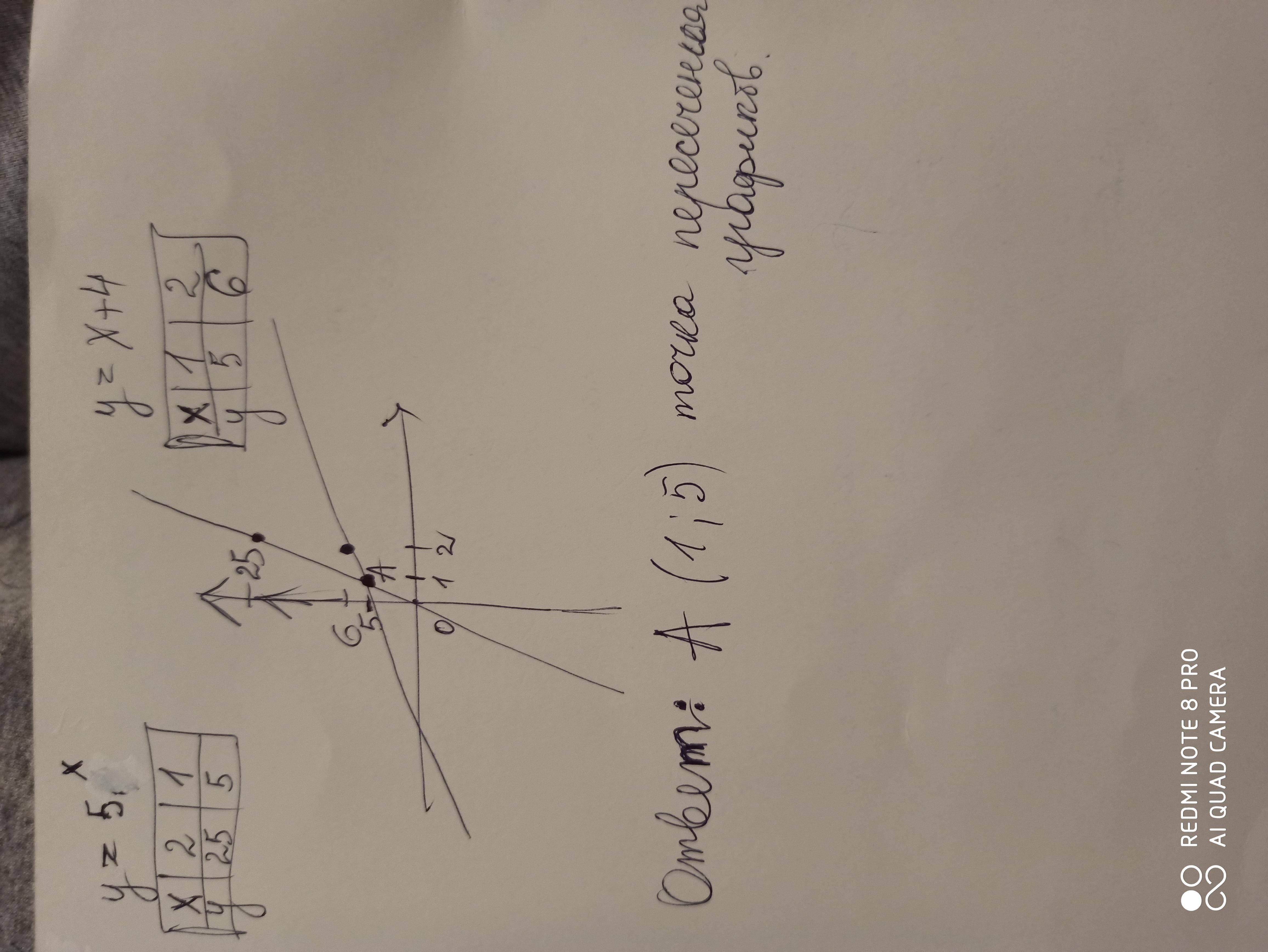 "НАЙТИ ТОЧКУ ПЕРЕСЕЧЕНИЯ ГРАФИКОВ y=5^x и y=x+4"
