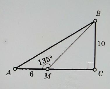 Угол сумежный с углом 135 равен 45. С триугольнтка ВМС за тангенсом tg45°=10/x(x-МС) x=10. Тогда АМ 6+10=16