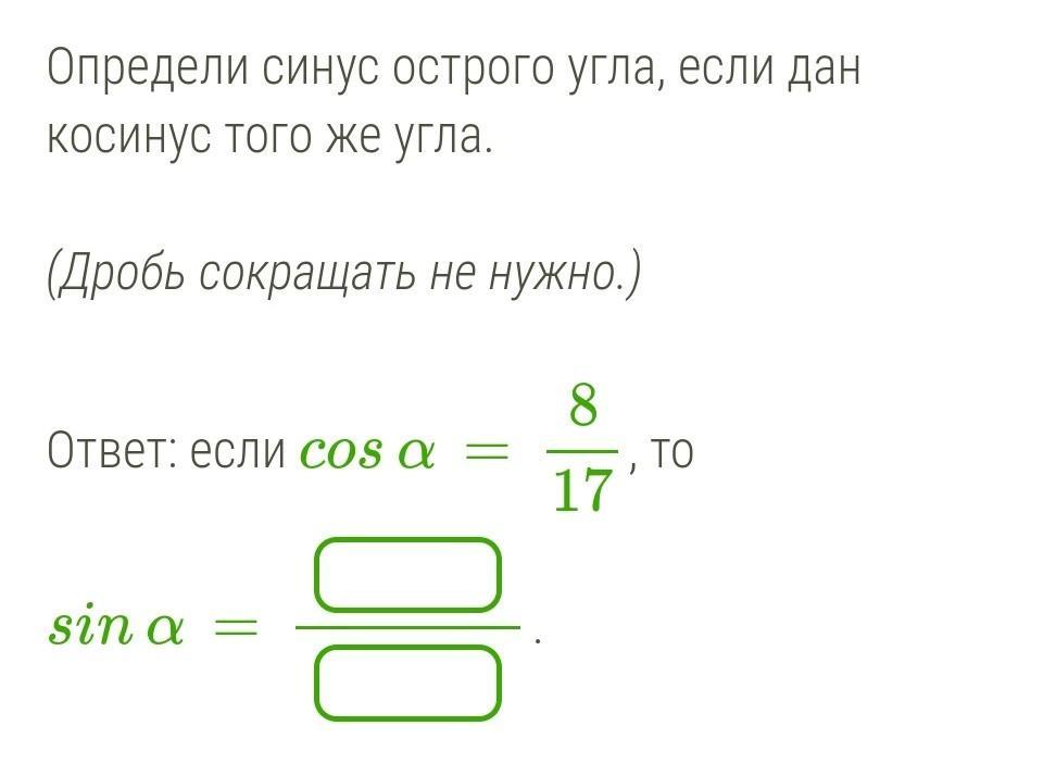 - з цієї рівності ми можемо знайти невідомий катет, а потім і синус кута.