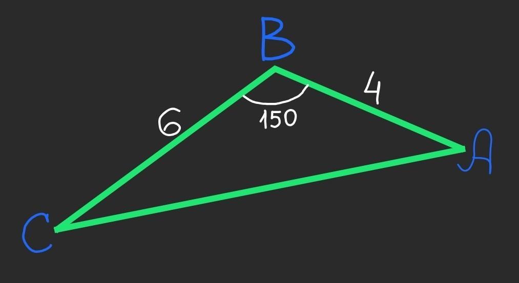 Нехай а i c— сторони трикутника, В – кут між ними. Знайдіть площу трикутника, якщо a = 6 см, с = 4 см, B = 150°.