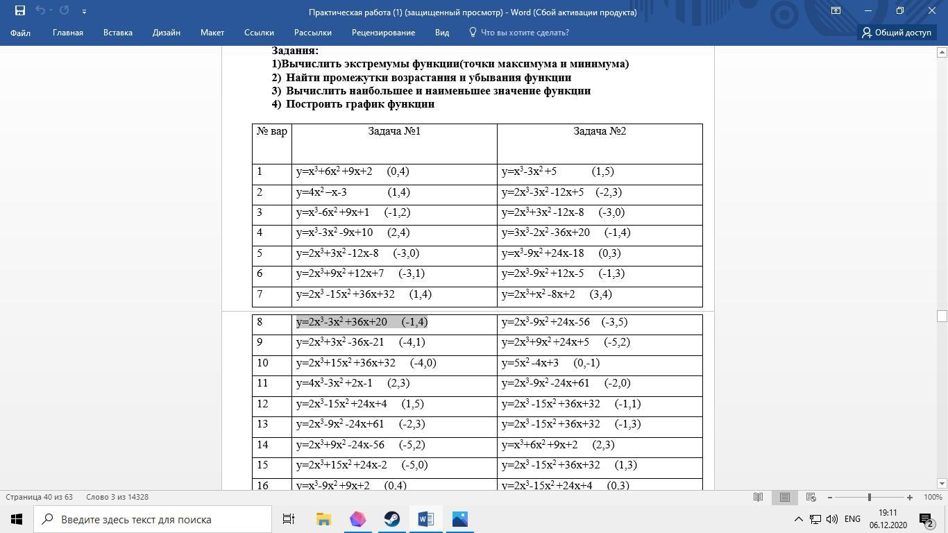1)Вычислить экстремумы функции(точки максимума и минимума)