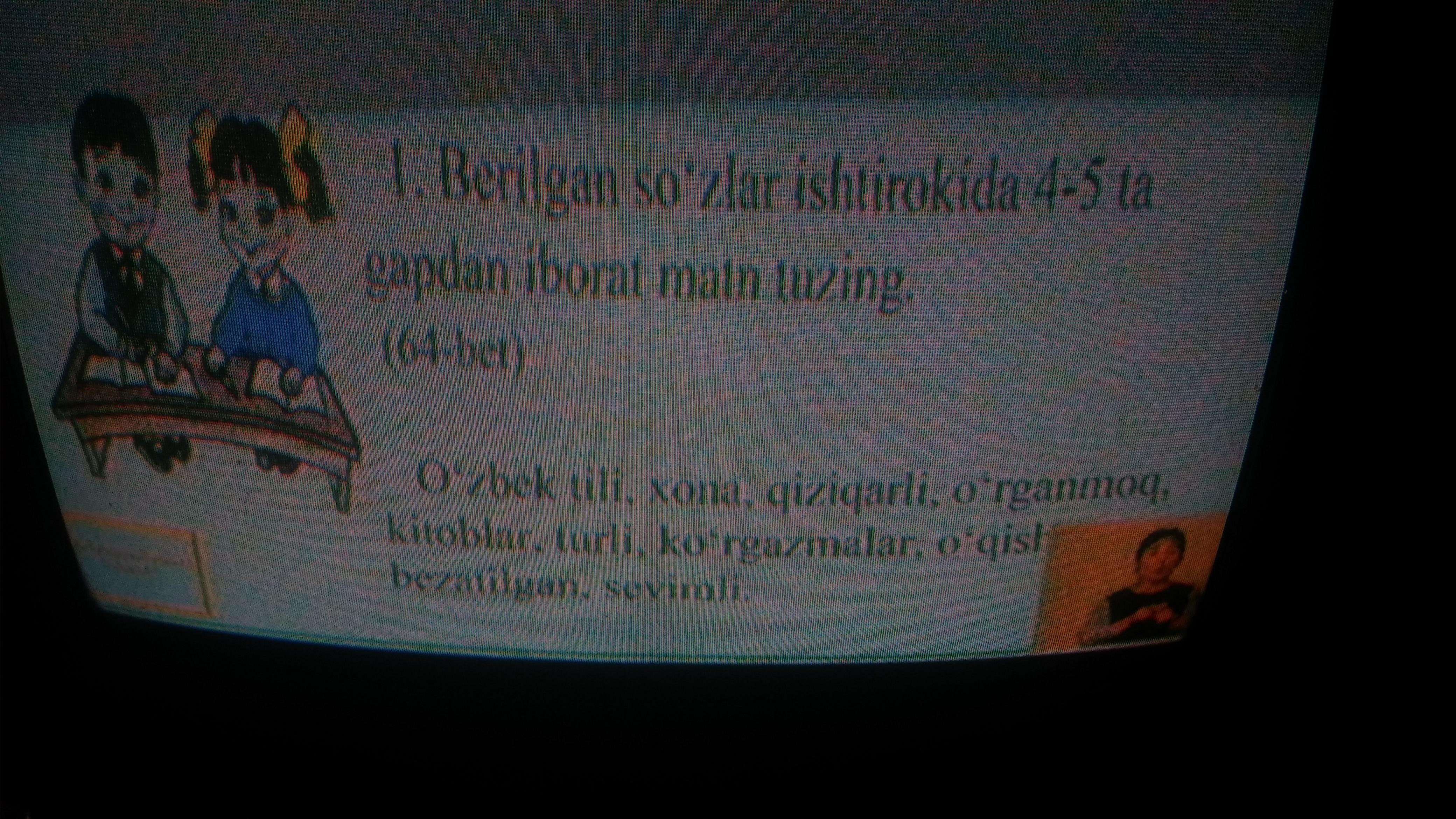 Bizning o'zbek tili xonasi juda keng va yorug'. Bu xonada biz o'zbek tili fanidan qiziqarli darslar o'tamiz. O'zbek tili xonasi o'qib-o'rganishimizga juda qulay. Bu yer nodir kitoblar, tutli ko'rgazmalar bilan bezatilgan. O'zbek tili xonasi mening eng sevimli xonam.