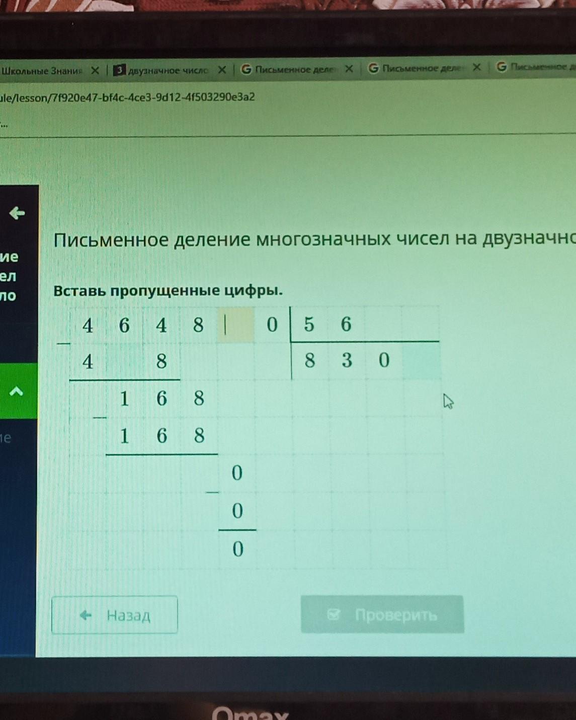 письменное деление многозначных чисел на двухзначное число. вставь пропущенные цифры