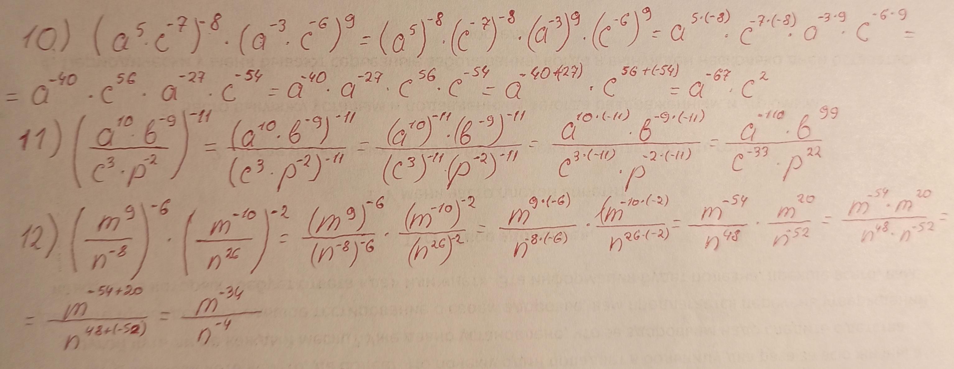 При возведении степени в степень степени нужно умножить, а при умножении одинаковых оснований с различными степенями - степени нужно добавить. Поэтому имеем следующие результаты на фото: