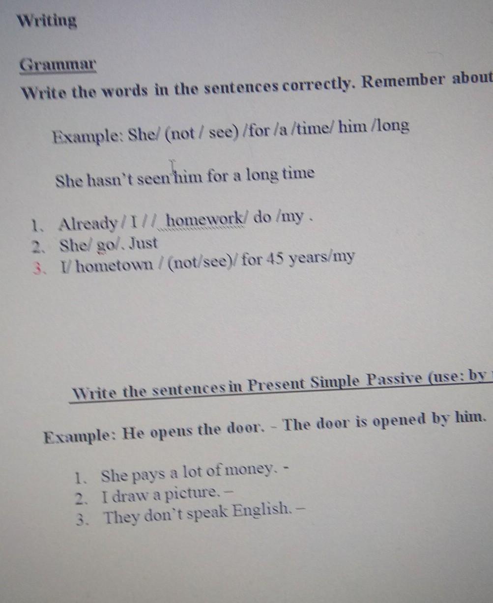 Write the words in the sentences correctly. Remember about the present perfect Tense.