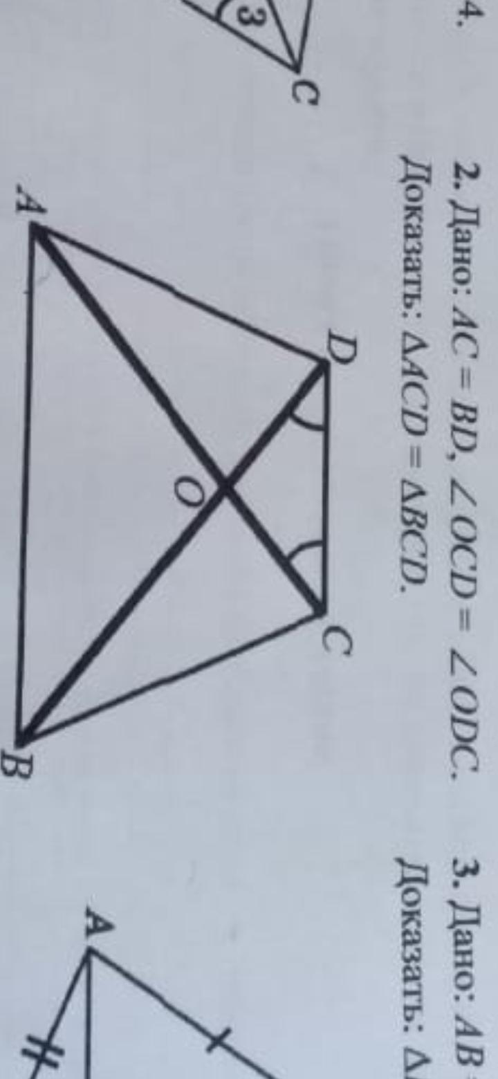 Треугольники равны по двум сторонам: АС=BD (по условию), DB - общая сторона и углу между ними (∡C=∡D) по условию.