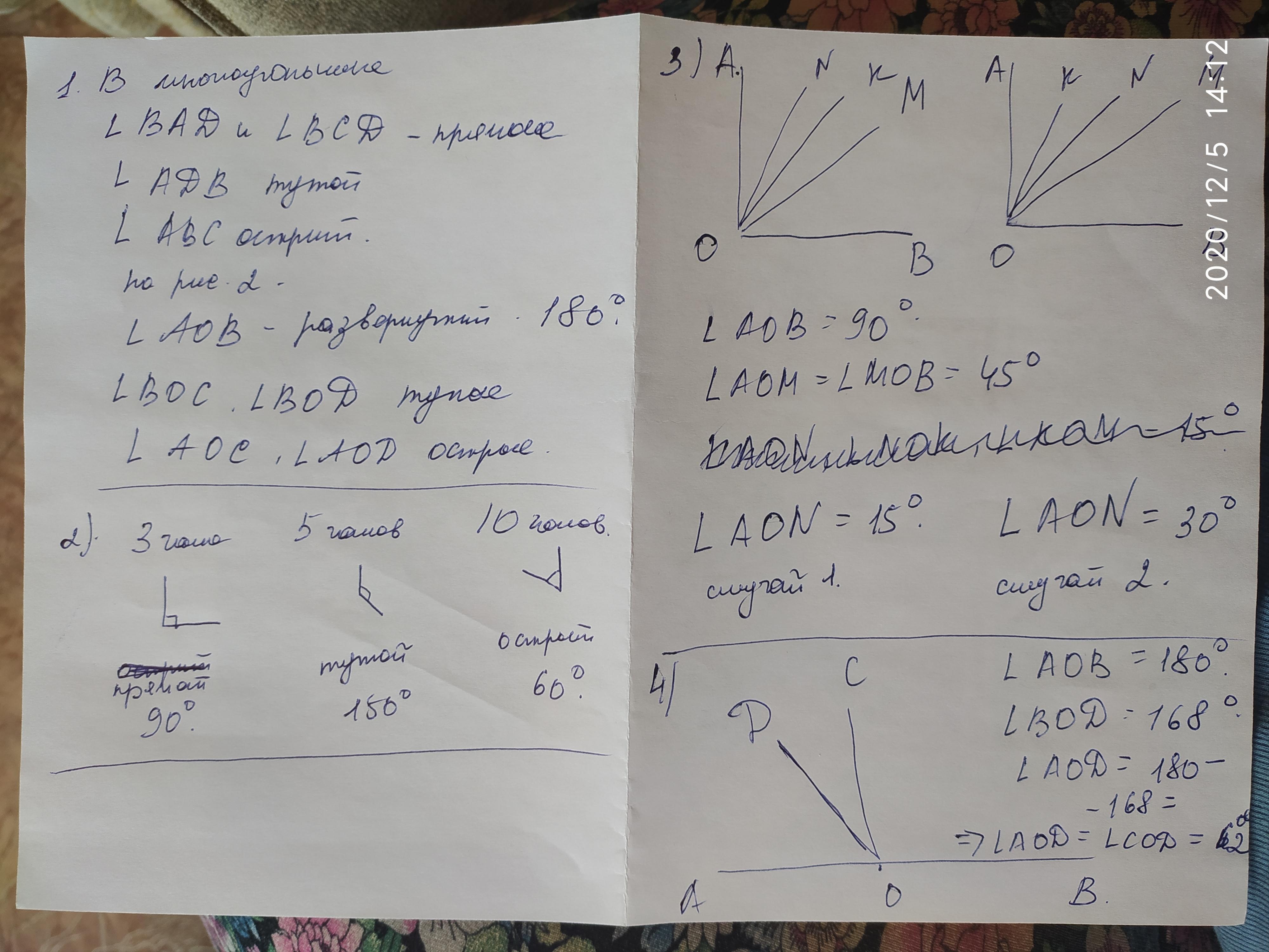 Запишите названия прямых, острых и тупых углов, изображенных на рисунке.