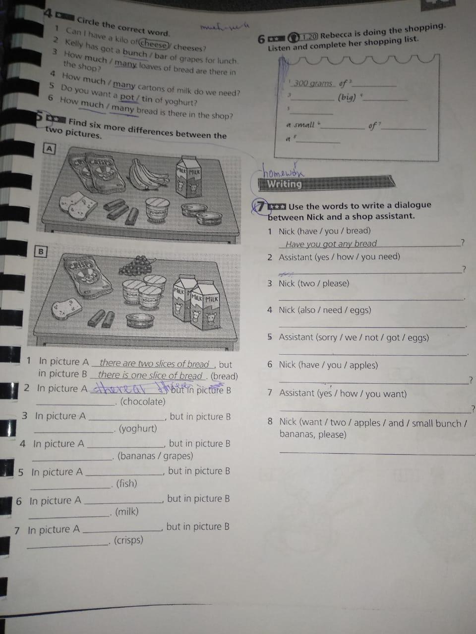 6.In picture A there is one packet of milk,but in picture B there are two packet of milk.