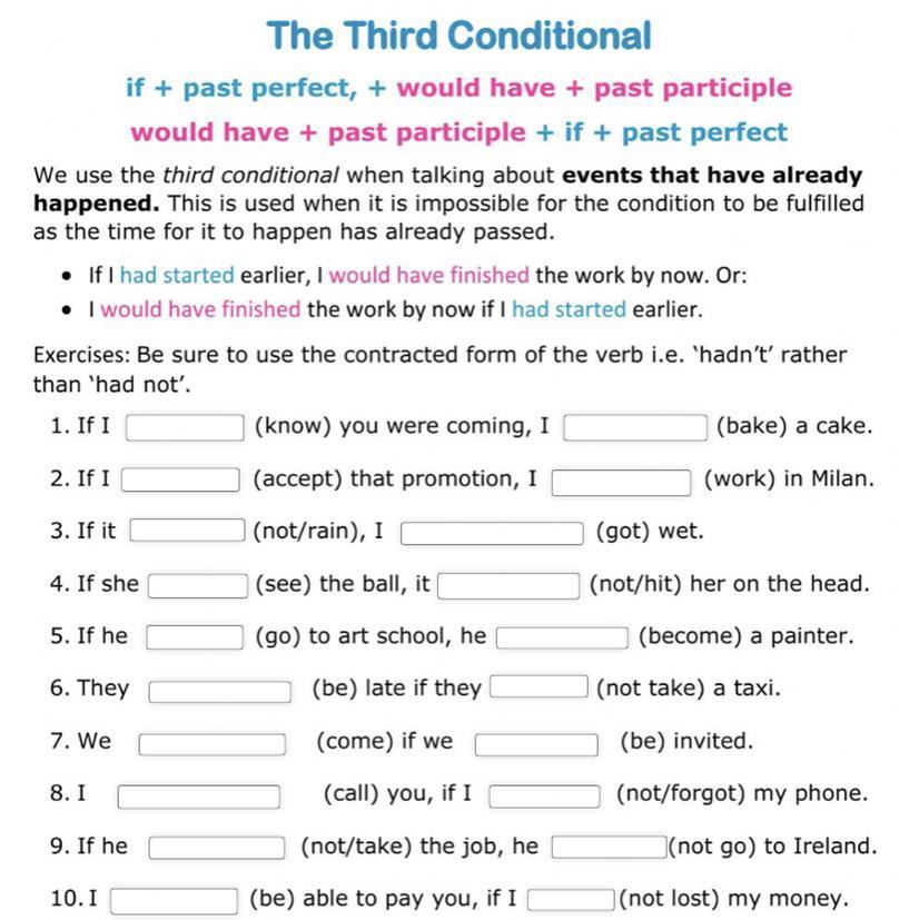 Exercises: Be sure to use the contracted form of the verb i.e. hadn't' rather