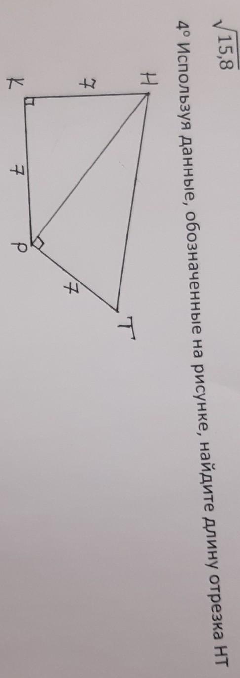 НТ^2 = НР^2 + РТ^2 = 98 + 49 = корень из 147