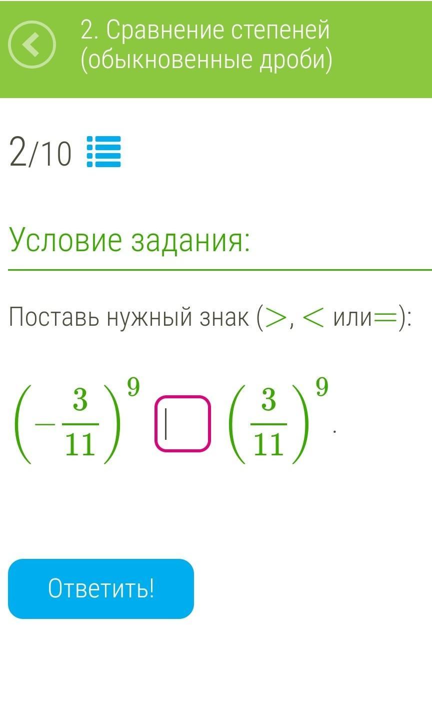 {( -  \frac{3}{11} )}^{9}  <  {(  \frac{3}{11} )}^{9}
