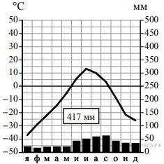 На рисунку представлена климатограмма, построенная по данным метеонаблюдений в разных частях России. Рассмотрите климатограмму и выполните задания.