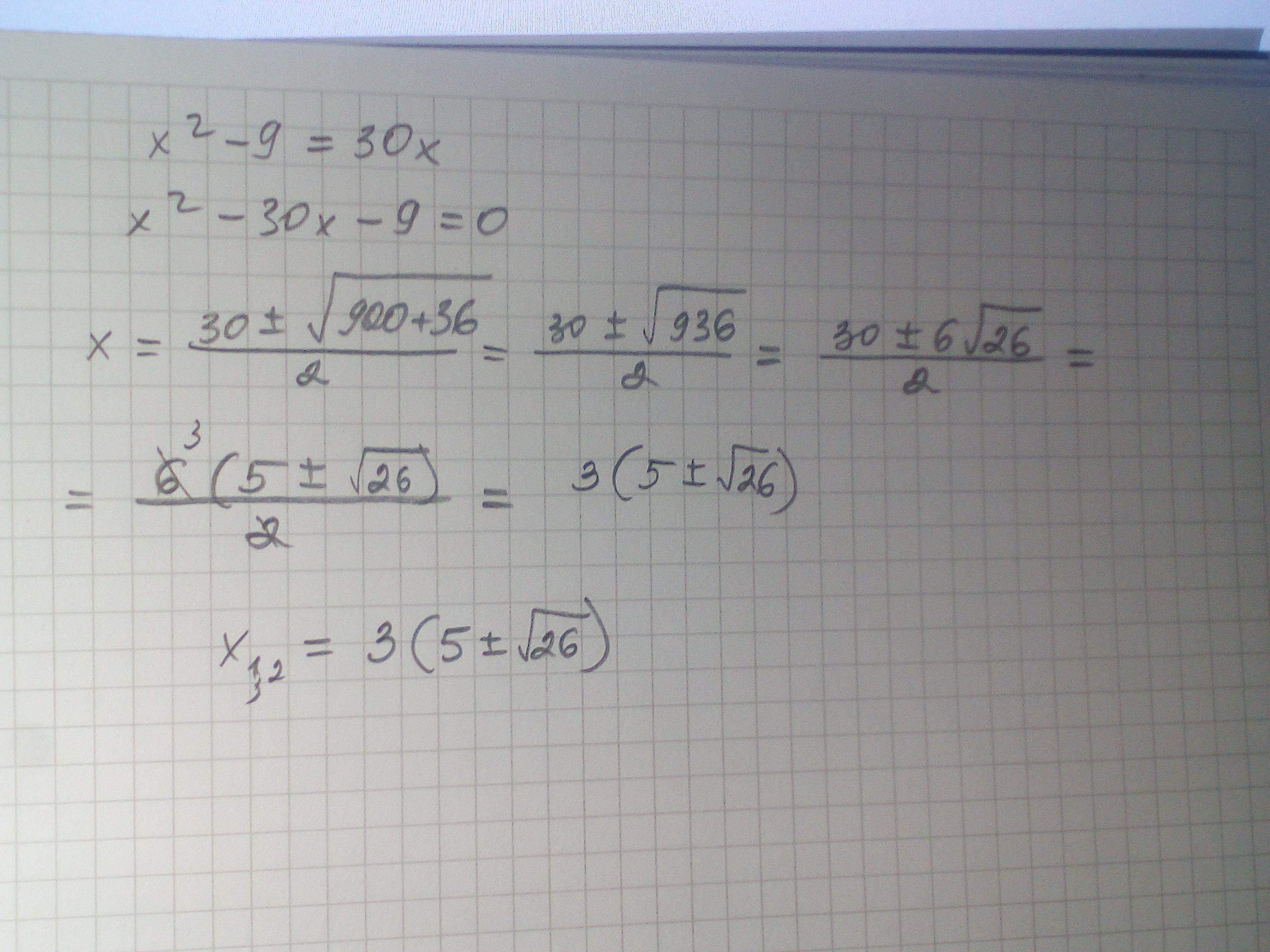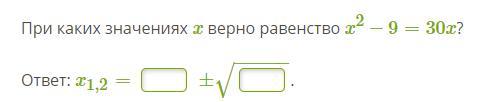 При каких значениях x верно равенство x^2−9=30x?
