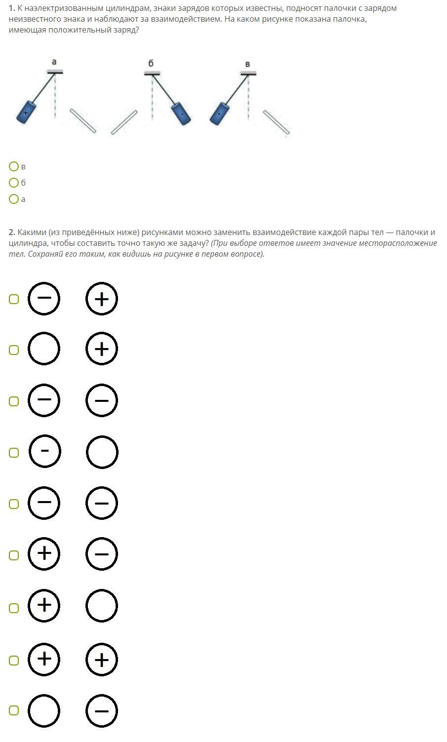 1.Палочка, имеющая положительный заряд, показана на рисунке А.