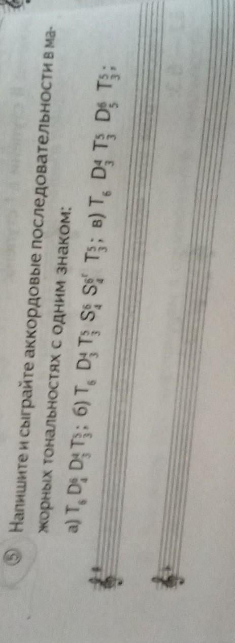 Быстро помогитееееее!!!!!!!! Пожалуйста!!!!!!!!!Напишите и сыграйте аккордовые последовательности в мажорных тональностях с одним знаком d6 d64 d43 t53 T6 д43 т53 s64 g64 t53 T6 d43 t53 d65 t53