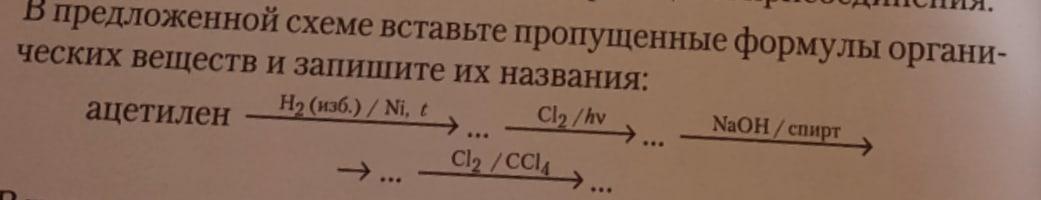 C2H6+Cl2—>C2H5Cl+HCl(хлорэтан)