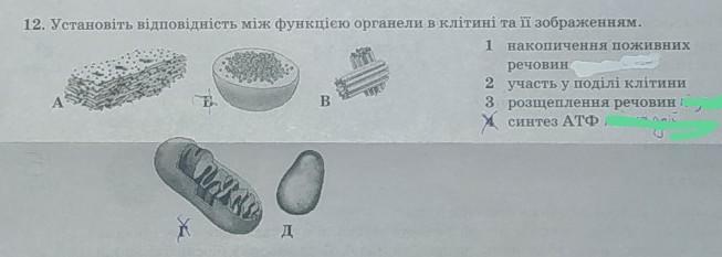Установіть відповідність між функцією органели в клітині та її зображенням.