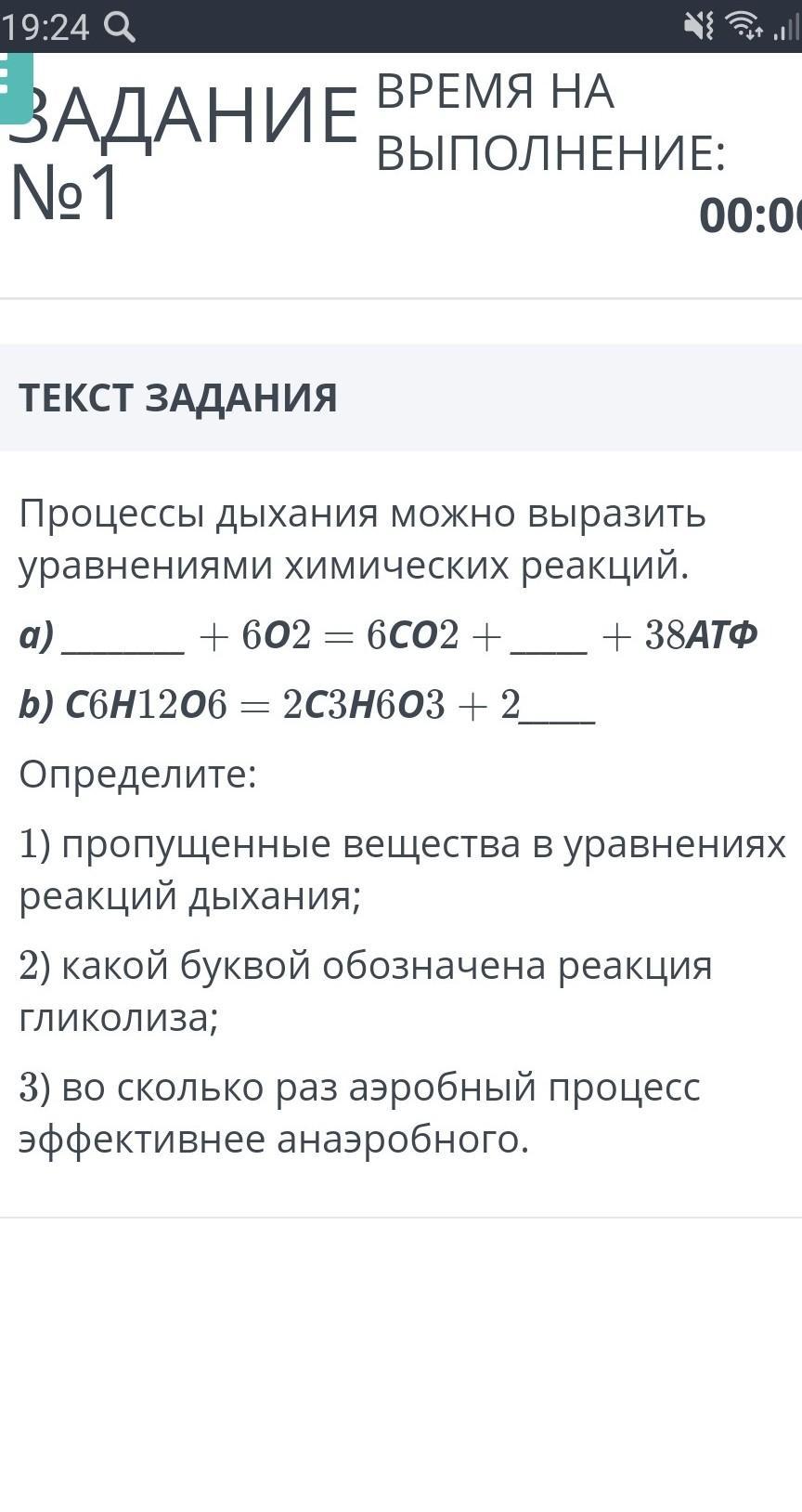 Процессы дыхания можно выразить уравнениями химических реакций. a) + 602 — 6с02 + 38АТФ b) Сбн1206 — 2СЗН603 + 2 Определите: 1) пропущенные вещества в уравнениях реакций дыхания; 2) какой буквой обозначена реакция гликолиза; 3) во сколько раз аэробный процесс эффективнее анаэробного