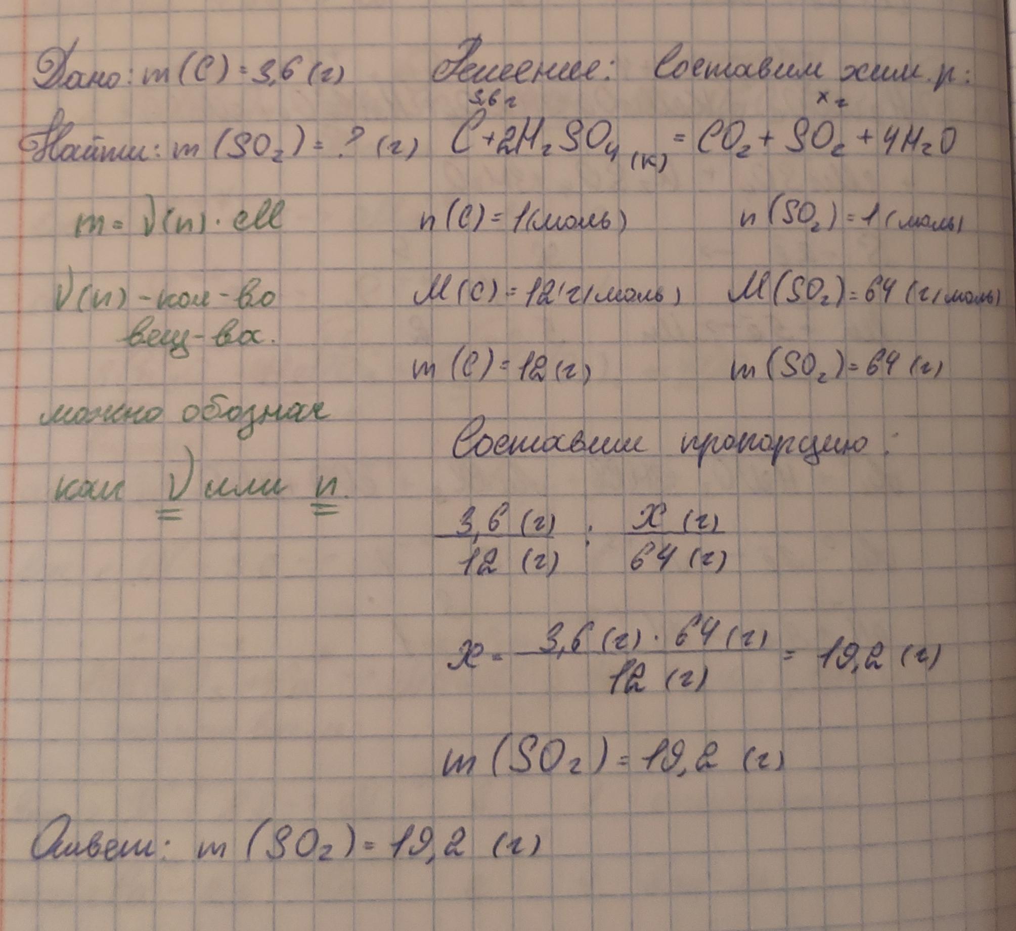 п.с (3,6 (г) над углеродом и вычисления под ним) и х (г) над SO2 и вычисления под ним.)
