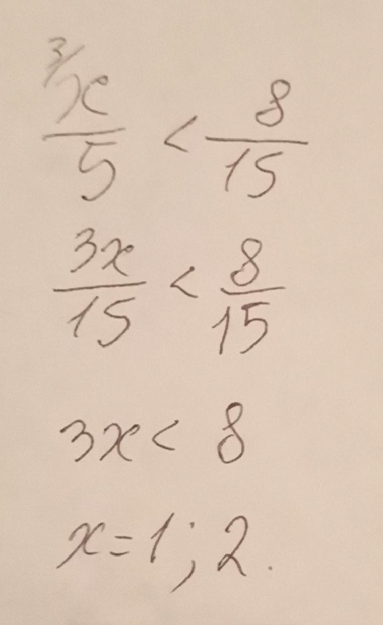 Сначала сведем два дроби к общему знаменателю (число, делится на 5 и 15 одновременно), затем от сравнения двух дробей с одинаковыми знаменателями перейдем к сравнению их числительных.