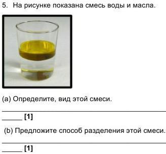 Б)Для разделения смеси двух жидкостей (растительное масло и вода) используется делительная воронка — сосуд с краном внизу. Сливают сначала более тяжёлый нижний слой, а затем — лёгкий верхний.